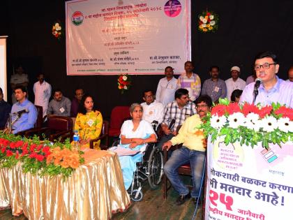 नसिमा हुरजूक म्हणाल्या, मतदान प्रक्रियेत दिव्यांगांचेही १०० टक्के मतदान कसे होईल, याबाबत प्रयत्न व्हावेत, यासाठी दिव्यांगाचे मतदान नोंदणीबरोबरच मतदान प्रक्रियेसाठी आवश्यक त्या सुविधा उपलब्ध व्हाव्यात. निवासी उपल्हिाधिकारी शिंदे यांनी स्वागत केले.
