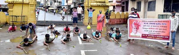 ग्रामविकास मंत्र्यांसाठी तरूणांचे दंडवत, गडहिंग्लजमध्ये 'महालक्ष्मी देवी'ला साकडे...!