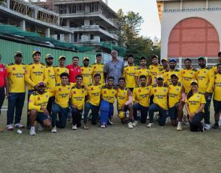 क्रिकेट : वेस्ट इंडिजचे महान खेळाडू कर्टनी वॉल्श कोल्हापूर टस्कर्सच्या खेळाडूंशी साधला संवाद