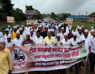 कोल्हापूर : Kolhapur: संकेश्वर-आजरा-बांदा महामार्गावरील टोल विरोधात आजरावासियांचा धडक मोर्चा