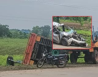 कार अन् ट्रॅक्टर अपघातात महाराष्ट्र ग्रामीण बँकेच्या कॅशियरचा मृत्यू, तीन कर्मचारी जखमी