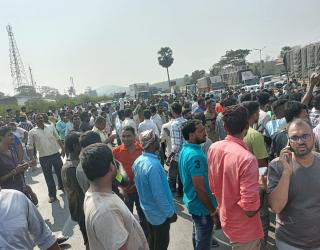 कळंबोली सर्कल जवळ अवजड वाहन चालकांची निदर्शने; महामार्ग रोखून धरला