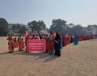 न्याय मागण्यांसाठी अंगणवाडी सेविकांचा खामगावात मोर्चा