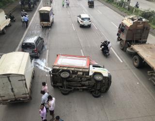 अपघात टाळण्याच्या प्रयत्नात टेम्पो पलटला; सायन पनवेल मार्गावरील घटना