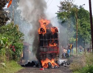 रत्नागिरी : चिपळुणात शॉर्ट सर्किटने ट्रकला भीषण आग, ट्रकमधून उडी घेत चालकाने जीव वाचवला
