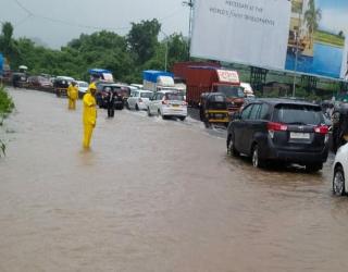 पाणी तुंबल्याने घोडबंदर मार्ग व महामार्ग जाम