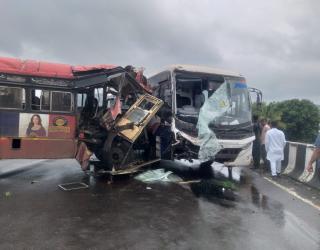पनवेल-पेण एसटीला अपघात! दुभाजकावरून पलिकडे जात जेएसडब्ल्यूच्या बसवर आदळली, चालक गंभीर
