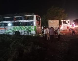 खाजगी प्रवासी बस पुणे-सोलापूर महामार्गावर उलटली; अनेकजण गंभीर व किरकोळ जखमी
