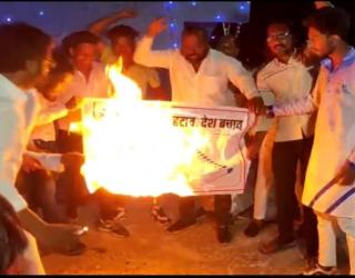 सामाजिक कार्यकर्त्यांनी ईव्हीएमची प्रतिकृती जाळली