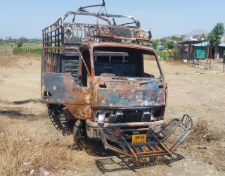 डिझेल टाकी फुटून लागलेल्या आगीत टेम्पो जळून खाक; दोघे जखमी, जुन्नरमधील घटना