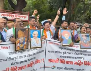 ठाणे : भिडे गुरुजींच्या निषेधार्थ ठाण्यात अजित पवार गटाच्या NCPचे धरणे आंदोलन; अटक करण्याची मागणी