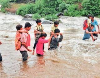नंदुरबारमध्ये शिक्षणासाठी विद्यार्थ्यांचा नदीतून जीवघेणा प्रवास