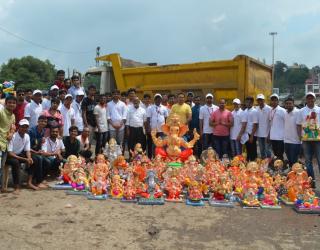 इराणी खणीत १०८३ गणेशमूर्तीचे विसर्जन; लहान ते २१ फूट गणेशमूर्तींचा समावेश