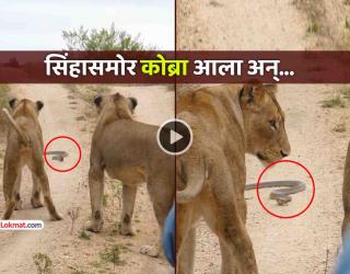 सोशल वायरल : VIDEO: दोन सिंहांचा सुरु होता मुक्त संचार, अचानक समोरून आला 'किंग कोब्रा' अन् मग...