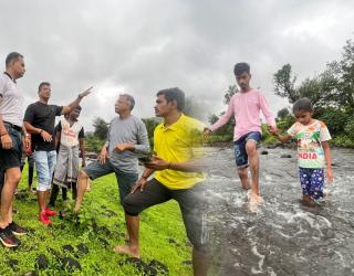 ठाणे : अन् डोळ्यांत अश्रू तरळले! 'त्या' शाळेच्या वाटेवरील नदीवर २२ दिवसांत उभारणार साकव; एम्स फाउंडेशन आली धावून