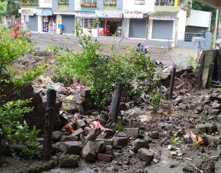 मुसळधार पावसामुळे सोसायटीची संरक्षक भिंत कोसळली
