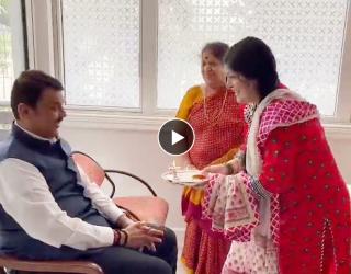 शर्मिला वहिनींनी केलं देवेंद्र फडणवीसांचं औक्षण; फोटो काढताना झालं असं काही की दोघांना हसू अनावर
