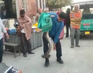 दुकानातील भांडी अचानक गडगडली, दुकानदाराने वाकून बघितले आणि बोबडीच वळली, डब्यांवर बसला होता ८ फूट लांब अजगर