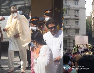 Lata Mangeshkar : लष्कराचं वाहन दाखल, अमिताभ, राज ठाकरेंसह दिग्गज पोहोचले 'प्रभू कुंज'वर