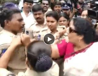 राष्ट्रीय : Video: बापरे! काँग्रेसच्या महिला नेत्याने थेट पोलीस कर्मचाऱ्याची कॉलर पकडली अन्...