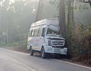 वैभववाडी–एडगांव मार्गावर अपघाताची मालिका सुरूच, टेम्पो ट्रॅव्हल्स झाडावर आदळून दोघे जखमी