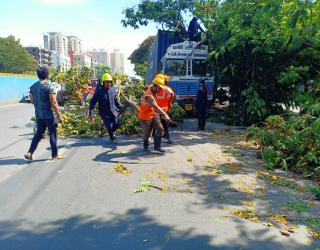 ठाणे : Video : झाडाला धडकल्याने २५ टन धाग्याची वाहतूक करणाऱ्या कंटेनरला अपघात