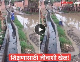 Video - जीवघेणा प्रवास! शाळेत जाण्यासाठी चिमुकलीची धडपड; पाय घसरून चिखलात पडली अन्...