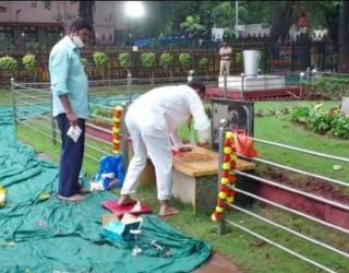 Narayan Rane: राणेंनी दर्शन घेतल्यानंतर शिवसैनिकांनी गोमूत्र शिंपडून केलं स्मृती स्थळाचं शुद्धीकरण!