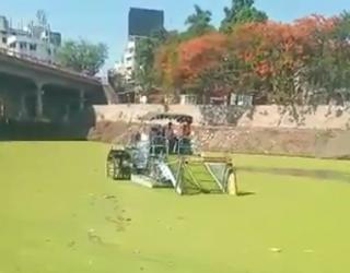 अखेर लॉकडाऊनचा मुहूर्त साधला, गोदावरी नदीतून पानवेलीचे काढकाम सुरू
