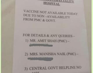 Pune coronavirus vaccine : लस मिळेना म्हणून रुग्णालयाने जाहीर केले महापालिका अधिकाऱ्यांचे फोन नंबर