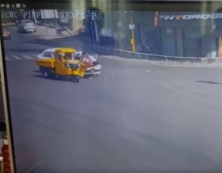 VIDEO: ...अन् क्षणार्धात 'ते' दोघे रिक्षाची काच फुटून रस्त्यावर; पिंपरीत भीषण अपघात