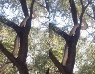 Video : झाडावर इतका लांब साप चढताना पाहून लोकांना आठवला Anaconda, तुम्ही कधी पाहिला का?