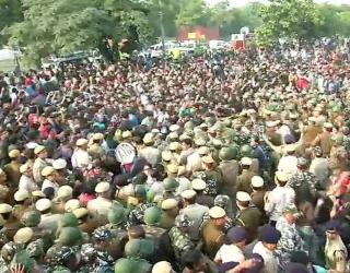 जेएनयू विद्यार्थ्यांच्या आंदोलनात स्वामी विवेकानंद यांच्या स्मारकाची विटंबना