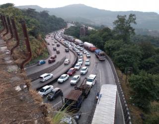 दिवाळीची सुट्टी संपवून परत निघालेल्या नागरिकांमुळे मुंबई-पुणे एक्सप्रेस वेवर वाहतुक काेंडी