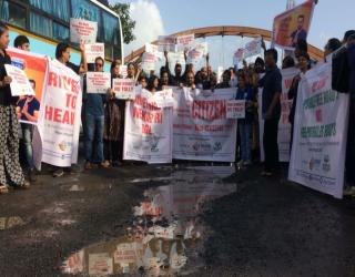 ठाण्यामध्ये वाहतूक कोंडी आणि खड्ड्यांविरोधात मानवी साखळी