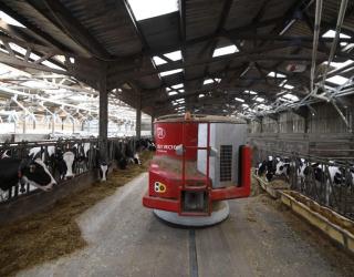फ्रान्समध्ये गायींना चारा-पाणी देण्यासाठी होतो रोबोटचा वापर
