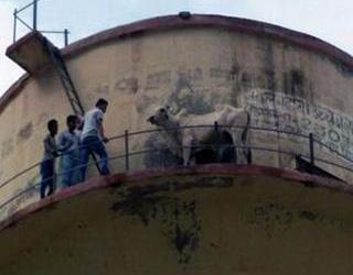 चक्क बैल चढला पाण्याच्या टाकीवर !