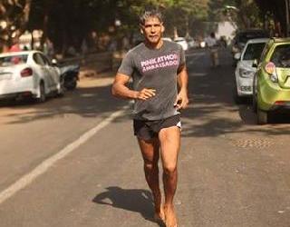 मिलिंद सोमणची एका दिवसात 67 किलोमीटरची अनवाणी धाव
