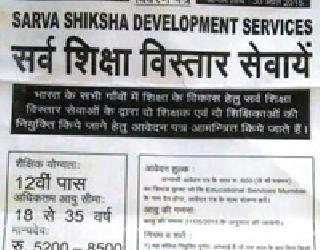 सर्वशिक्षा विस्तार सेवेच्या नावाने फसवणूक