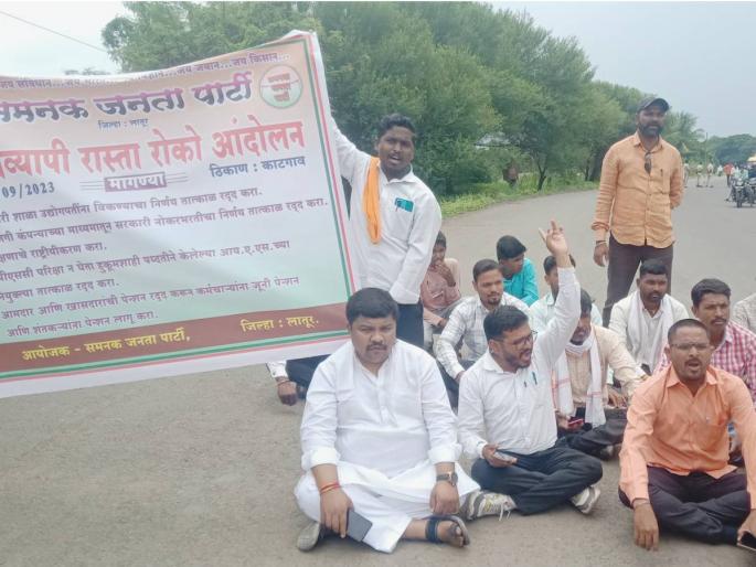 आशपाक पठाण, लातूर : सरकारी शाळांचे खासगीकरण व सरकारी नोकर भरती कंत्राटीकरणाचा निर्णय रद्द करावा, या मागणीसाठी समनक जनता पार्टीच्या वतीने लातूर -कळंब रोडवर काटगाव येथे मंगळवारी सकाळी ११ वाजता रास्ता रोको आंदोलन करण्यात आले. जिल्हाध्यक्ष जयसिंग जाधव यांच्या नेतृत्वात करण्यात आलेल्या आंदोलनामुळे जवळपास दोन तास वाहतूक ठप्प झाली होती.