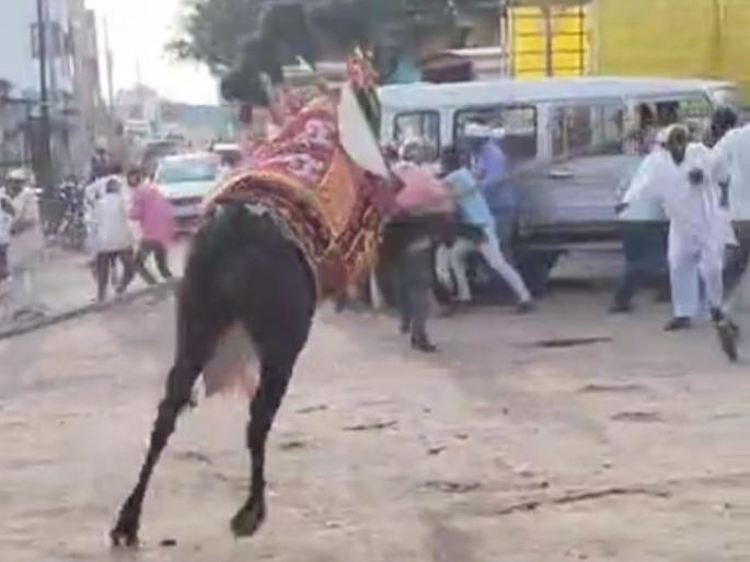 खरोळा गावात शुक्रवारी दिवसभर बैल पाेळा सणानिमित्त गावातील शेतकऱ्यांनी, पशुपालकांनी आपल्या बैलांना, पशुधनांची सजावट करून मिरवणूक काढत हाेते. दरम्यान, खराेळा गावातीलच शेतकरी संगमेश्वर तत्तापुरे हे आपल्या बैलांना झूल पांघरूण, सजावट करून त्यांची मिरवणूक काढत हाेते. यावेळी साउंडचा माेठा आवाज सुरू हाेता. शिवाय, अचानकपणे फाेडण्यात आलेल्या फटाक्याच्या आवाजाने बैल बिचकला आणि उधळायला. यातून मिरवणुकीत एकच गाेंधळ उडाला. परिणामी, मिरवणूक पाहण्यासाठी चाैकामध्ये जमा झालेले ग्रामस्थ आणि नागरिकांची एकच धावपळ सुरू झाली. घाबरून आबालवृद्धांसह नागरिकांनी पळ काढला. मिरवणुकीत बिचकलेला, उधळलेला बैल थेट शेतात असलेल्या दावणीकडे गेला. यात काेणतीही माेठी हानी झाली नाही.