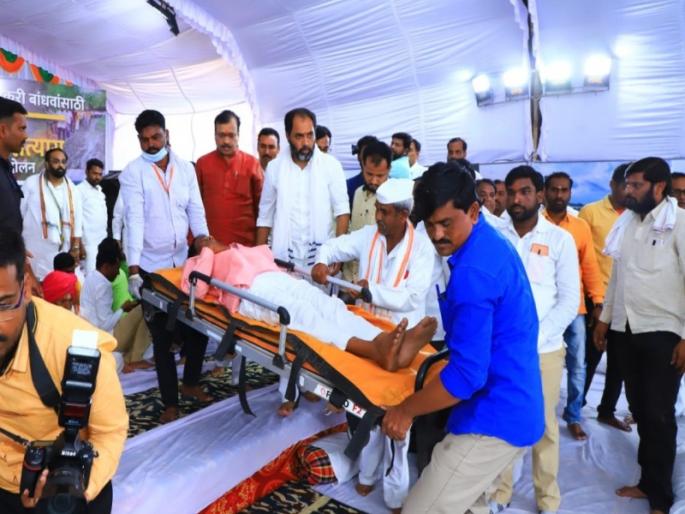 लातूर : अतिवृष्टी आणि पूरपरिस्थितीने नुकसान झालेल्या शेतकऱ्यांना सरसकट मदत द्यावी, या मागणीसाठी लातुरात भाजपचे अन्नत्याग आंदोलन सुरू असून, दुसऱ्या दिवशी मंगळवारी प्रकृती अस्वास्थ्यामुळे दोघा आंदोलनकर्त्यांना रुग्णालयात हलविण्यात आले. दरम्यान, शासनाचा निषेध नोंदवीत भाजपच्या २१ कार्यकर्त्यांनी मुंडन केले. माजी मंत्री आ.संभाजी पाटील निलंगेकर यांच्या नेतृत्वाखाली लातूरच्या छत्रपती शिवाजी महाराज चौकात १२७ शेतकऱ्यांनी ७२ तासांचे अन्नत्याग आंदोलन सुरू केले आहे. यावेळी आंदोलनकर्त्यांपैकी दोन शेतकऱ्यांची प्रकृती खालावल्याने त्यांना उपचारासाठी रुग्णालयात हलवावे लागले.