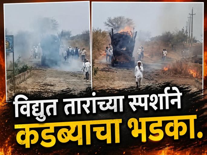 विद्युत तारांचा स्पर्श अन् कडब्याचा भडका; क्षणात ७०० पेंड्यांसह ट्रॅक्टर भस्मसात, चालक बचावला