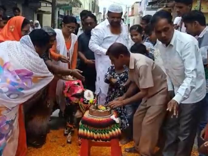 लातूरकरांनी अनुभवला अनोखा पोळा, सर्वधर्मीयांनी रस्त्यावर जन्मलेल्या वासरासाठी कापला केक