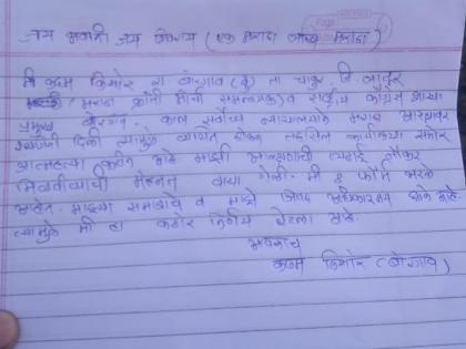 या तरुणाजवळ एक चिठ्ठी आढळून आली असून, या चिठ्ठीत त्याने लिहिले आहे की, सर्वोच्च न्यायालयाने मराठा आरक्षणास स्थगिती दिल्यानंतर जीवन अंधकारमय झाले आहे. आता आपल्या जीवनाला काही अर्थ नाही, म्हणून आपण हा कठोर निर्णय घेत असल्याचे म्हटले आहे.