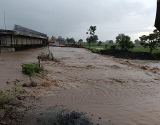 दीड तासात ६० मिमी पाऊस; लातूर-जहिराबाद महामार्गावरील पूल वाहून गेल्याने वाहतूक बंद