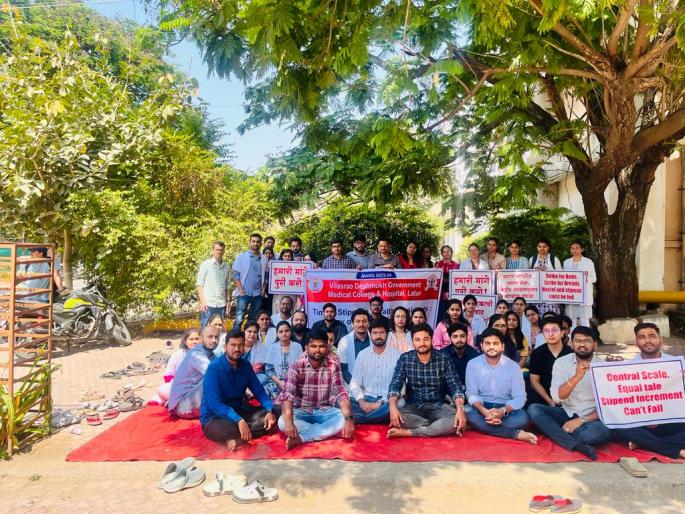 राज्यातील शासकीय वैद्यकीय महाविद्यालय व रुग्णालयातील निवासी डॉक्टरांचे विद्यावेतन प्रत्येक महिन्याच्या १० तारखेपर्यंत खात्यात जमा करण्यात यावे, निवासी डॉक्टरांसाठी पुरेशा प्रमाणात वसतिगृहांची व्यवस्था करण्यात यावी, विद्यावेतन हे केंद्रीय संस्थेमध्ये दिल्या जाणाऱ्या विद्यावेतनाप्रमाणे देण्यात यावे अशा मागण्यांसाठी ‘मार्ड’ने गुरुवारपासून बेमुदत संप सुरू केला आहे. आंदोलनात विलासराव देशमुख शासकीय वैद्यकीय महाविद्यालय व रुग्णालयातील १८० निवासी डॉक्टर सहभागी झाले आहेत. शनिवारी अधिष्ठाता कार्यालयासमाेर ठिय्या मांडत घोषणा दिल्या.