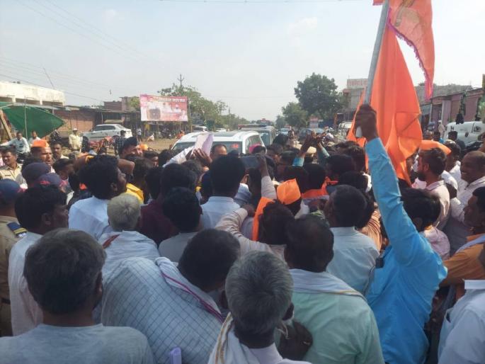 बोरगाव काळे (लातूर) : मराठा समाजाला तात्काळ आरक्षण देण्यात यावे या मागणीसाठी आंदोलकांनी उदगीर तालुक्यातील वाढवणा पाटी येथे क्रीडा मंत्री संजय बनसोडे यांचा ताफा सोमवारी अडविला. तर लातूर तालुक्यातील बोरगाव काळे येथे माजी मंत्री आमदार अमित देशमुख यांना काळे झेंडे दाखविण्यात आले. मराठा आरक्षणाची मागणी सकल मराठा समाजाकडून वाढत आहे. यासाठी मनोज जरांगे पाटील यांनी पुढाऱ्यांना गावबंदी करण्याचे आवाहन केले आहे. त्यानुसार आंदोलक तीव्र झाले आहेत. क्रीडा मंत्री संजय बनसोडे यांचा सोमवारी वाढवणा पाटी, चिमाचीवाडी येथे नियोजित दौरा होता. त्यानुसार ते सोमवारी दुपारी वाढवणा पाटी येथे आले असता मराठा आंदोलकांनी त्यांच्या गाड्यांचा ताफा अडवला. यावेळी क्रीडा मंत्री बनसोडे यांनी गाडीतून उतरून निवेदन स्विकारले. आरक्षणासंदर्भात राज्य शासन विचार करत असल्याचे त्यांनी सांगितले. यावेळी त्यांनी पुढील दौरा रद्द करून उदगीरकडे रवाना झाले.