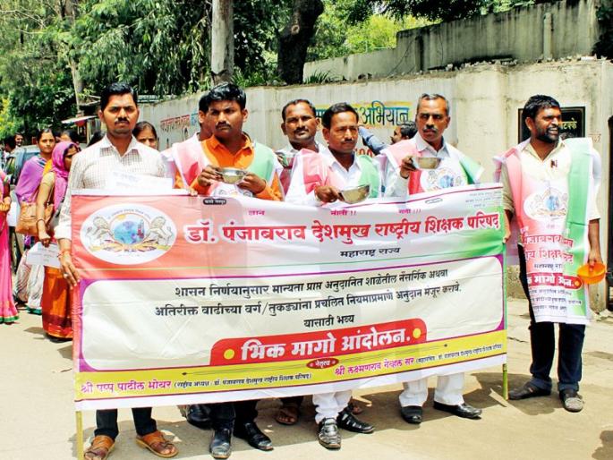 लातूर : शहरातील गांधी चौक येथील शिक्षण उपसंचालक कार्यालय ते जिल्हा परिषद कार्यालयापर्यंत विविध मागण्यांसाठी राष्ट्रीय शिक्षक परिषदेसह अन्य संघटनांच्या वतीने शिक्षक दिनी रॅली काढण्यात आली. यावेळी प्रशासनाला निवेदन देण्यात आले. शासन निर्णयानुसार मान्यताप्राप्त अनुदानित शाळेतील अतिरिक्त अथवा नैसर्गिक वाढीच्या वर्ग, तुकड्यांना प्रचलित नियमाप्रमाणे तातडीने अनुदान मंजूर करावे, यासह अन्य मागण्यांसाठी शिक्षक परिषदेच्या वतीने बुधवारी सकाळी आंदोलन करण्यात आले.यानिमित्त गांधी चौकातील शिक्षण उपसंचालक कार्यालय ते जिल्हा परिषद कार्यालयापर्यंत शिक्षकांनी रॅली काढली. रॅली दरम्यान शिक्षकांनी भीक मांगो आंदोलन करून आपले निवेदन प्रशासनाला सादर केले. १६ आॅगस्ट २०१२ च्या शासन निर्णयाप्रमाणे शैक्षणिक वर्ष २०१२-१३ मध्ये देण्यात आलेल्या, १४ मार्च २०११, ३ सप्टेंबर २०१३, ८ आॅक्टोबर २०१३, ७ फेब्रुवारी २०१४ च्या शासन निर्णयानुसार मंजूर मात्र जून २०१२ पासून कार्यरत असलेल्या मान्यताप्राप्त अनुदानित शाळेतील अतिरिक्त अथवा नैसर्गिक वाढीच्या तुकड्यांना प्रचलित नियमानुसार अनुदान मंजूर करावे, या तुकड्यांना चार वर्षे पूर्ण झाल्यानंतर मूल्यांकन करणे क्रमप्राप्त होते. पण ते करण्यात आले नाही. ते करावे. प्रचलित नियमाप्रमाणे पाचव्या वर्षी २० टक्के, सहाव्या वर्षी ४० टक्के आणि नवव्या वर्षी १०० टक्के अनुदान देणे क्रमप्राप्त होते. मात्र ते शासनाकडून अद्यापही देण्यात आले नाही.या तुकड्यांना नियमाप्रमाणे अनुदान द्यावे, यासह अन्य मागण्यांचा निवेदनात समावेश आहे. यावेळी डॉ. पंजाबराव देशमुख राष्ट्रीय शिक्षक परिषदेचे शामराव लवांडे, विभागीय अध्यक्ष धनंजय उजनकर, शिवकुमार अंबुलगे, ज्ञानेश्वर जाधव, शिवशंकर स्वामी, अशोक नाटकरे, विश्वनाथ खंदाडे, संदीप बिराजदार, विकास भिंगोले, फैय्याज जळकोटे, लक्ष्मण डोंगरे, संतोष साळुंके, दयानंद बानापुरे, दत्तात्रय माने, किशोर गाढवे, गौरव सिंदफळकर, बापूराव रोंगे, ज्ञानेश्वर गजरे, सचिन चव्हाण, कृष्णा हुमनाबादे, फरहाना शेख, शिल्पा मुस्के, अरुणा कांदे, निखिल घोडके, ज्योती गुंजोटे, राघवेंद्र बोरोळे आदींसह जिल्ह्यातील शिक्षकांची उपस्थिती होती.निलंग्यात काळ्या फिती लावून आंदोलन...निलंगा येथे शिक्षक समिती तसेच शिक्षक सहकार संघटनेने विविध मागण्यांसाठी काळ्या फिती लावून आंदोलन केले. डीसीपीएस योजना बंद करून जुनी पेन्शन योजना लागू करावी, या प्रमुख मागणीसाठी हे आंदोलन करण्यात आले. प्रशासनाच्या विरोधात काळ्या फिती लावून शिक्षकांनी निषेध नोंदविला. यावेळी शिक्षक सहकार संघटनेचे राज्याध्यक्ष संतोष पिट्टलवाड, शिक्षक समिती तालुकाध्यक्ष अरुण साळु