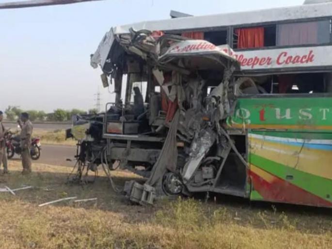 औराद शहाजानी येथील खासगी लोटस ट्रॅव्हल्स क्रमांक (एमएच ०९ सिव्ही ४५९७) बुधवारी रात्री पुण्यासाठी रवाना झाली होती. दरम्यान, पाटस घाटाजवळ टायर फुटल्याने उभा असलेल्या ट्रकला ट्रॅव्हल्सने पाठीमागून जोराची धडक दिली. ही घटना गुरुवारी पहाटे ४.३० वाजता घडली. यामध्ये ट्रॅव्हल्समधील श्वेता प्रभू पंचाक्षरे व सत्यभामा शेषराव बोयणे (रा. औराद शहाजानी) यांचा मृत्यू झाला. तर तीन प्रवासी गंभीर असून, इतर तेरा जण जखमी आहेत. जखमींवर पुण्यातील यवत येथील शासकीय रुग्णालयात उपचार सुरू आहेत.